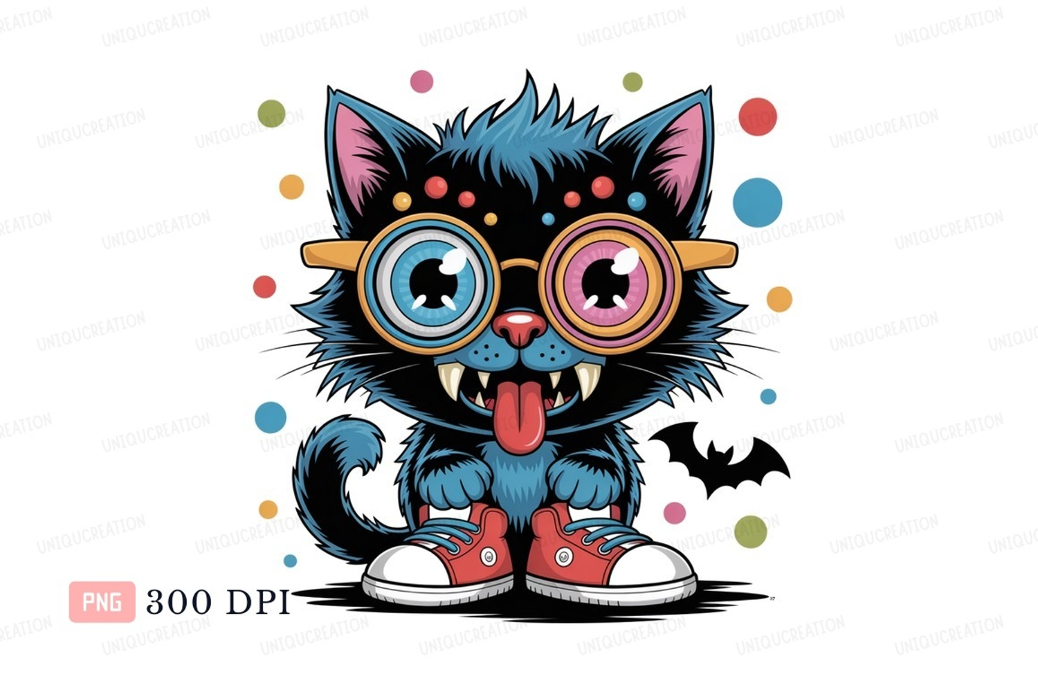 Cartoon Funny Playful Black Colorful Dots Blue Cat Glasses Sneakers