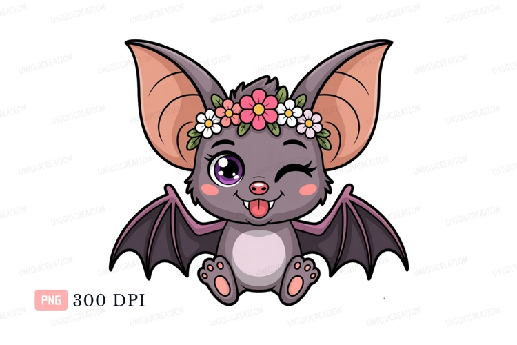 Cute bat wearing flower crown winking animal example image 1
