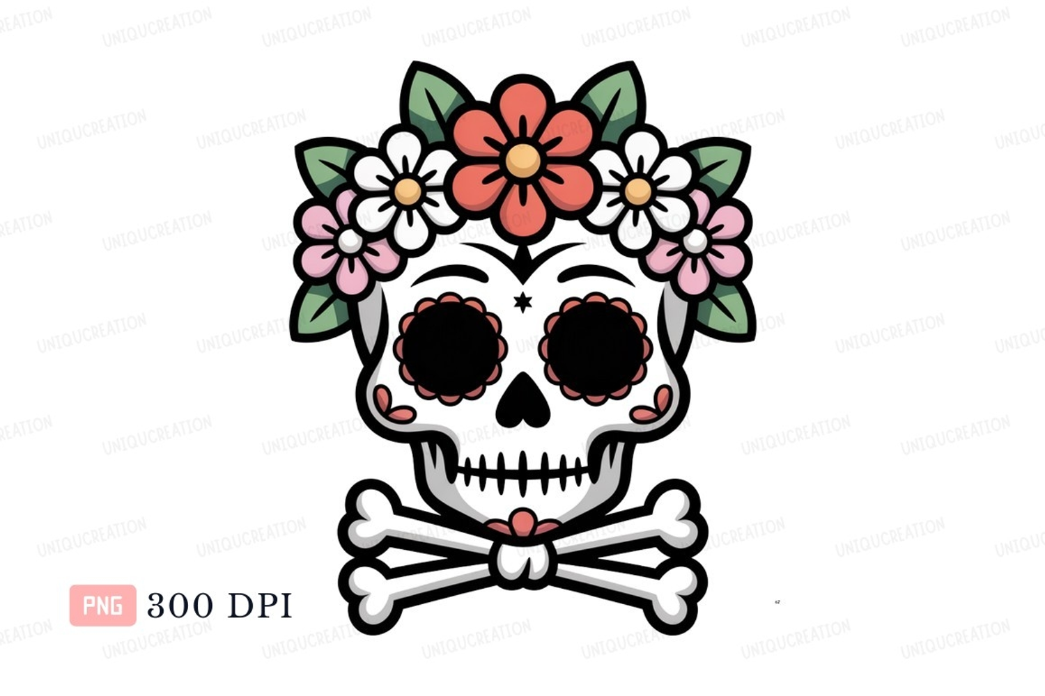 Black Pink Green Skull Flowers Crown Coral White Crossbones Day