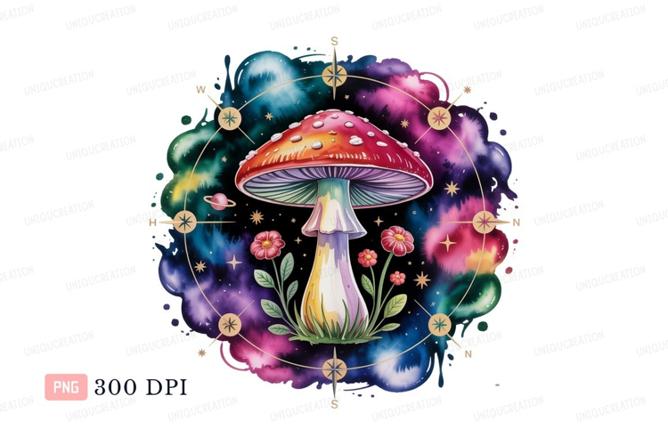 Cosmic mushroom with flowers and compass galaxy space example image 1