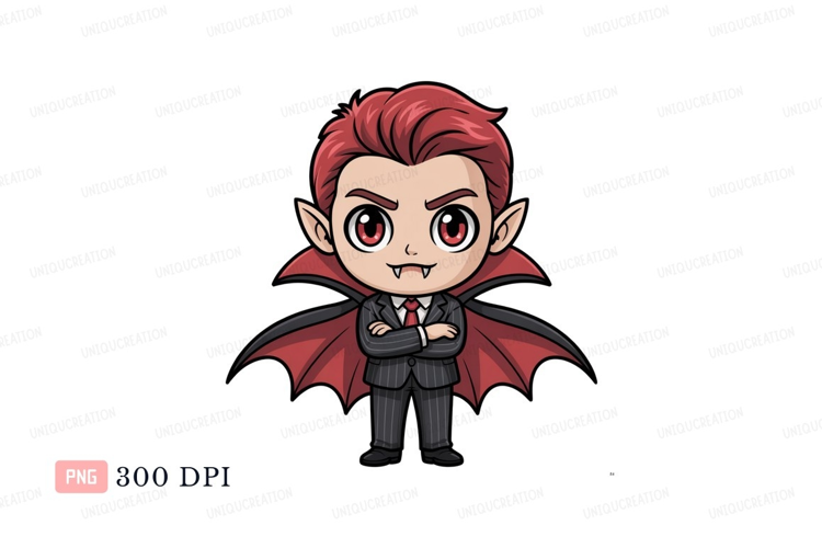 Character Cartoon Vampire Spooky Suit Red Tie Fangs Cape Chibi