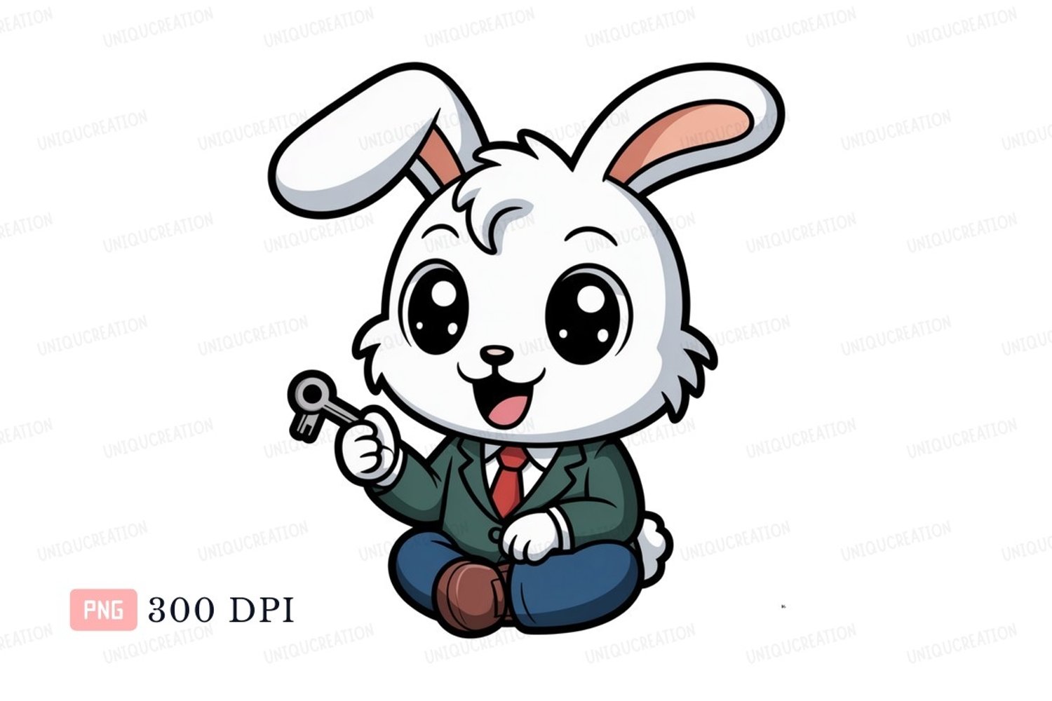 Illustration Character Cartoon Animal Cute Clipart Bunny White Holding Key