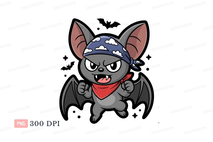 Grumpy bat wearing bandana and scarf animal cartoon example image 1