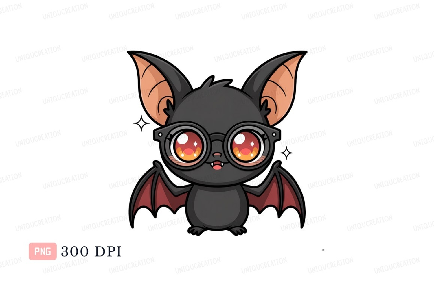 Illustration Cartoon Animal Black Cute Orange Bat Glasses Wings Kawaii