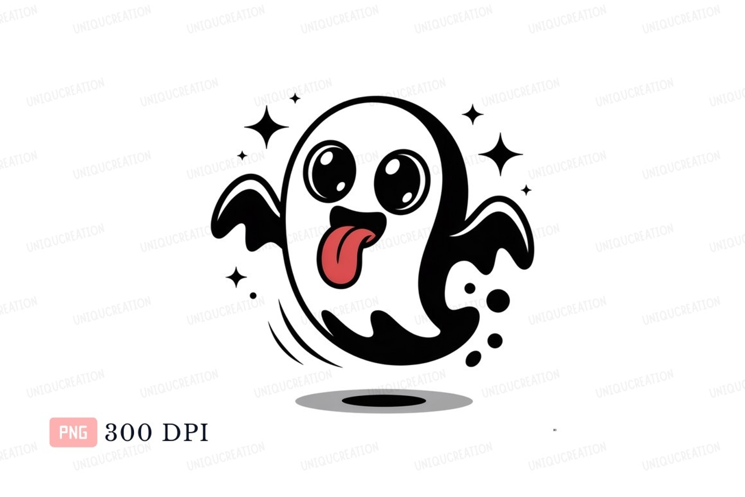 Illustration Character Cartoon Playful Halloween Black Spooky Ghost Red Tongue