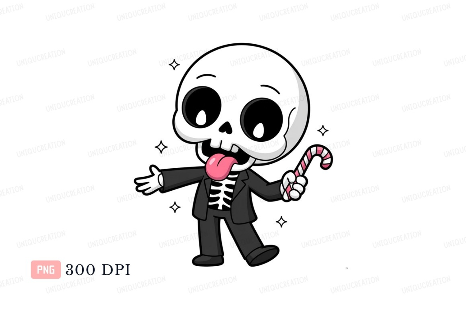 Character Cartoon Black Candy Pink White Skeleton Suit Tongue Cane
