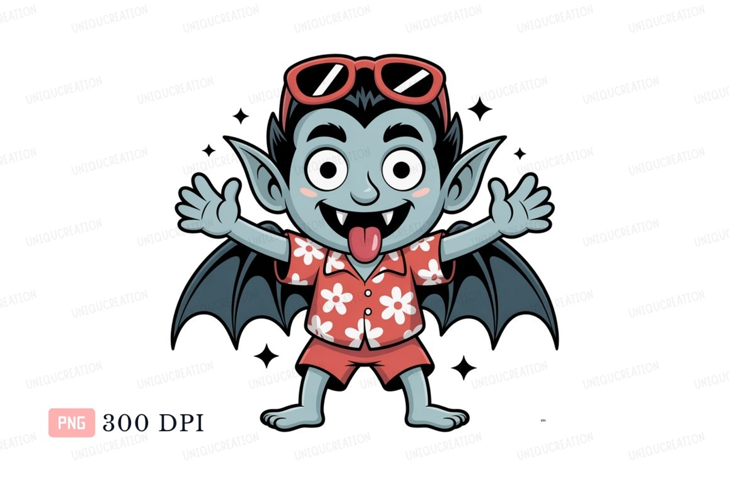 Cute vampire wearing sunglasses and Hawaiian shirt example image 1