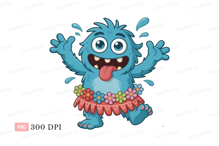 Blue monster dancing with flower skirt image example image 1