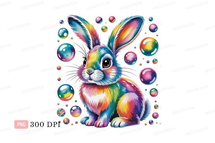 Colorful rabbit surrounded by bubbles bunny rainbow example image 1