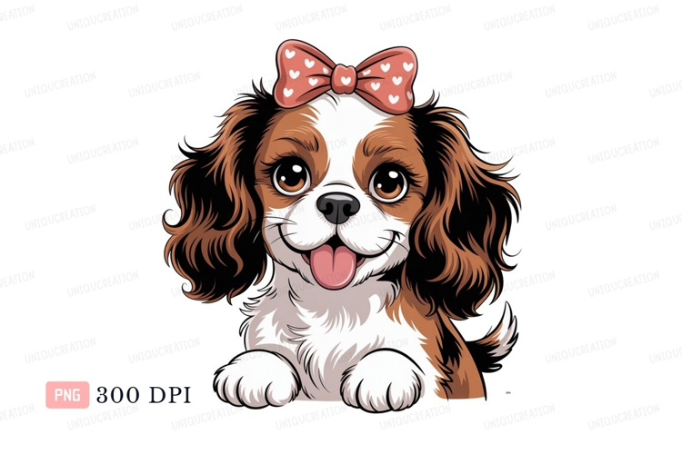 Adorable brown white dog wearing pink bow puppy canine example image 1