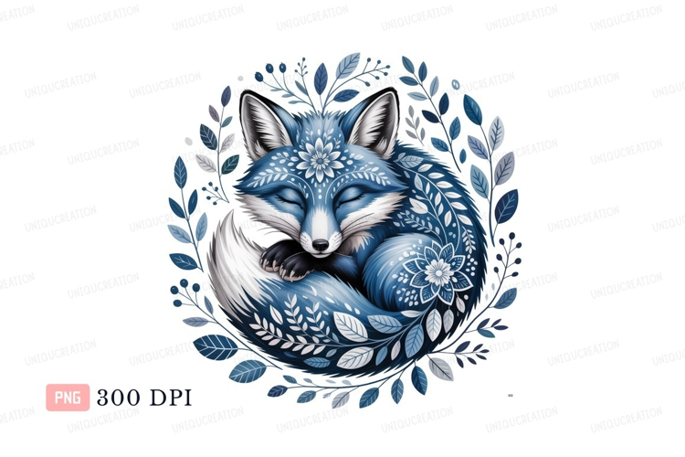 Similar Design Products to Sleeping fox adorned with floral patterns blue white
