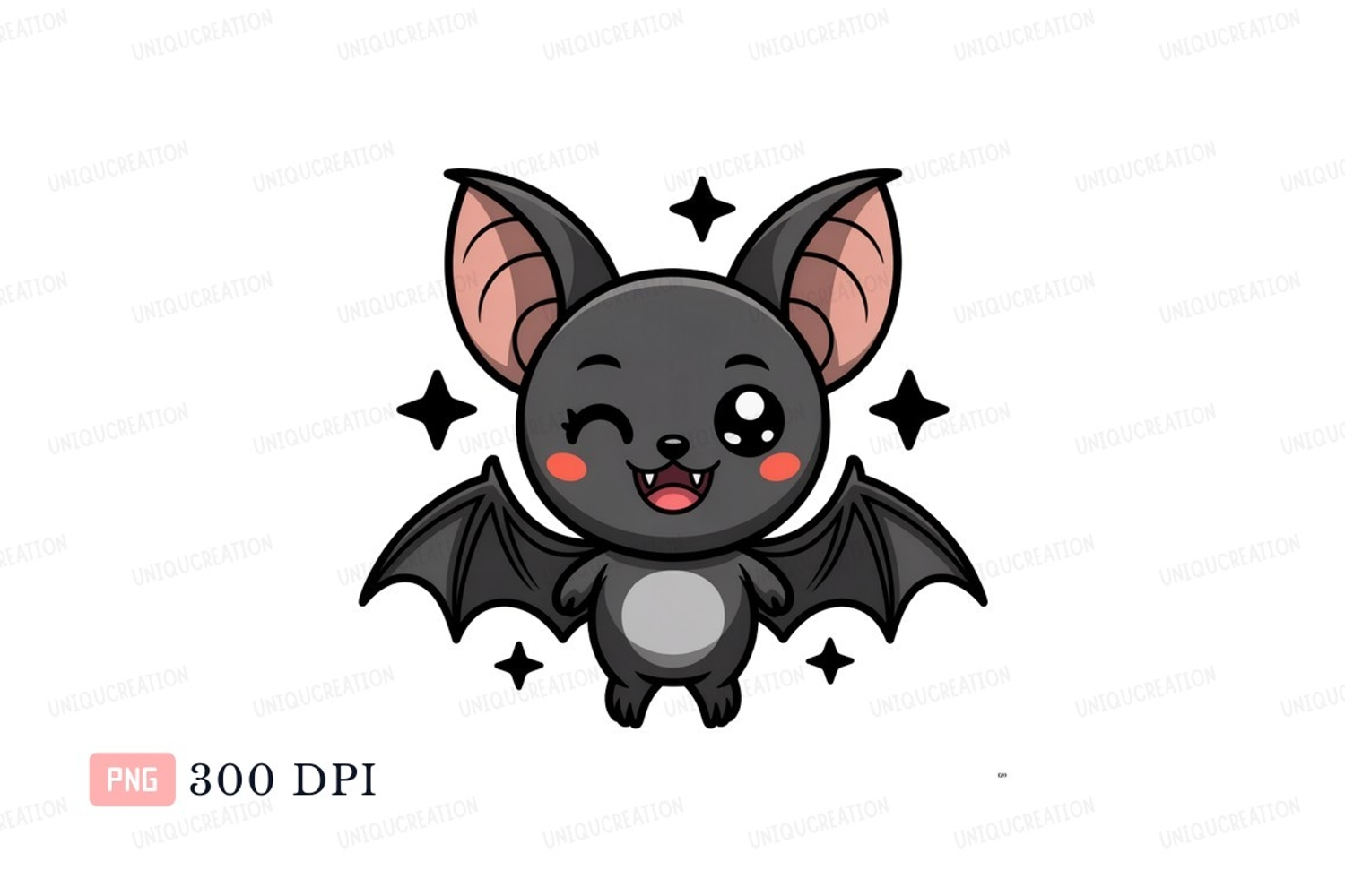 Cartoon Black Cute Pink Bat Wings Stars Ears Winking Cheeks