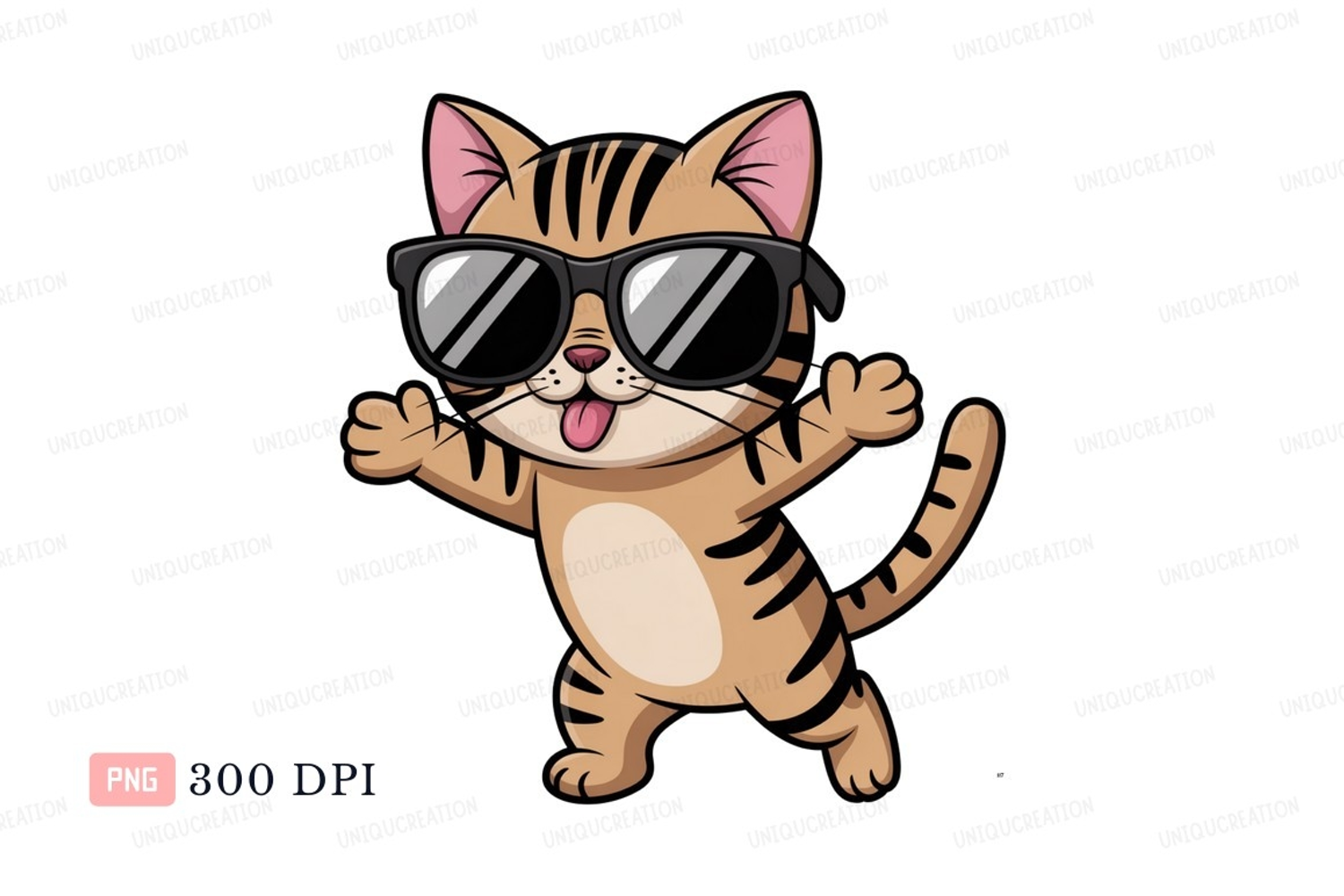 Cool cat dancing with tongue out sunglasses playful example image 1
