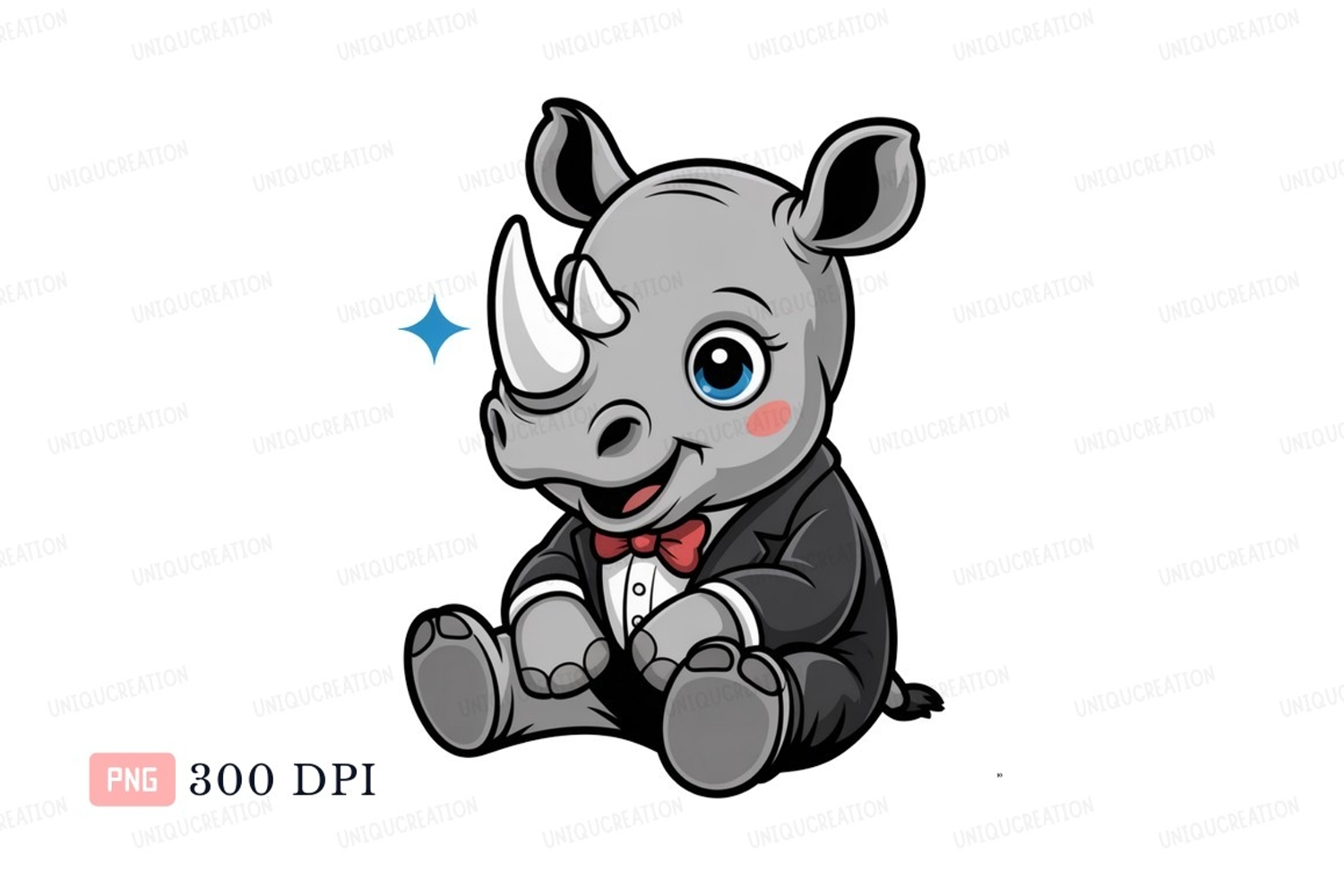 Cute rhino wearing tuxedo and bowtie animal example image 1