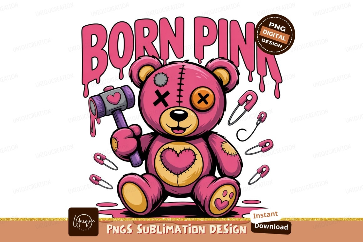 Similar Design Products to Pink teddy bear holding hammer safety pins image