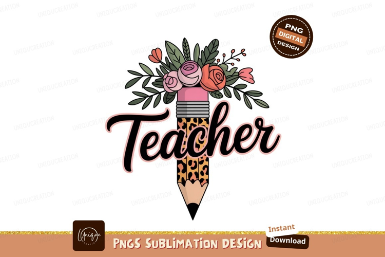 Floral Pencil Teacher Design roses leaves example image 1