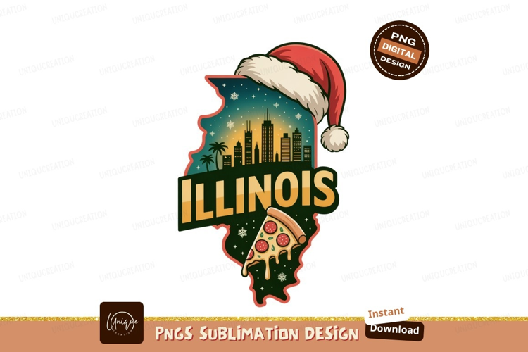 Similar Design Products to Illinois state silhouette with pizza and santa hat