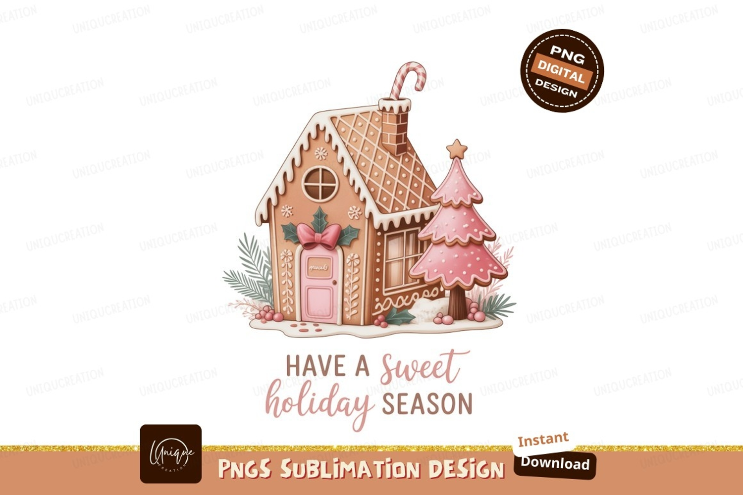 Similar Design Products to Gingerbread house pink tree candy cane image