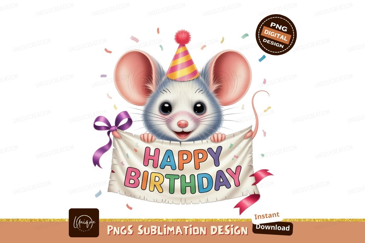 Similar Design Products to Cute mouse wearing party hat holding happy birthday banner