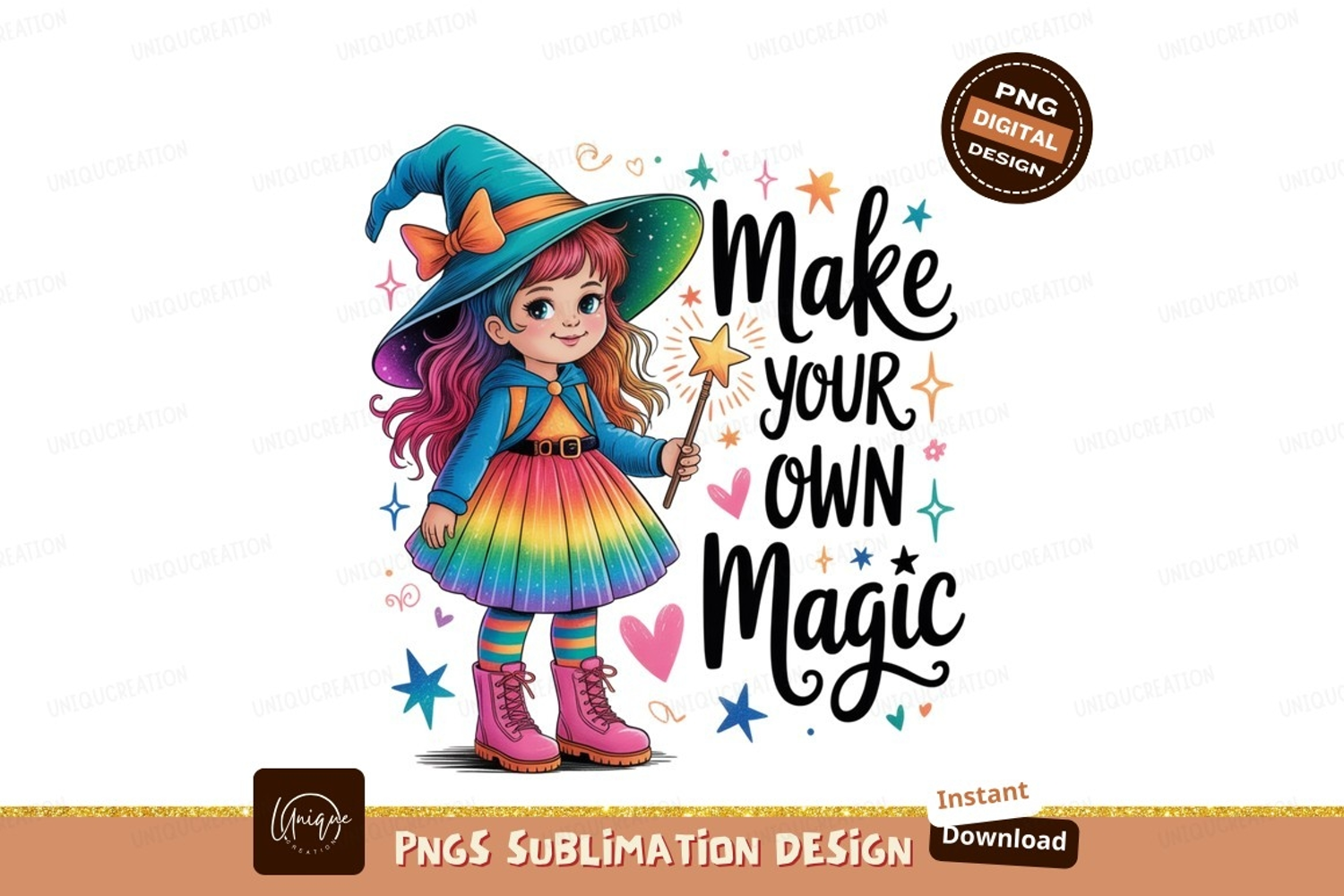 Similar Design Products to Little witch with rainbow dress and magic wand girl