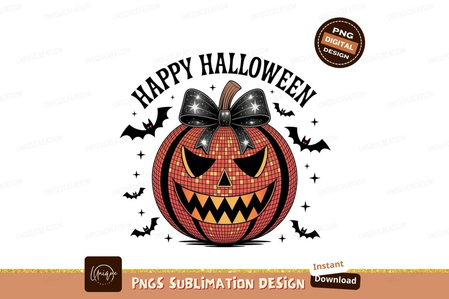 Disco pumpkin spooky bow bats halloween orange example image 1