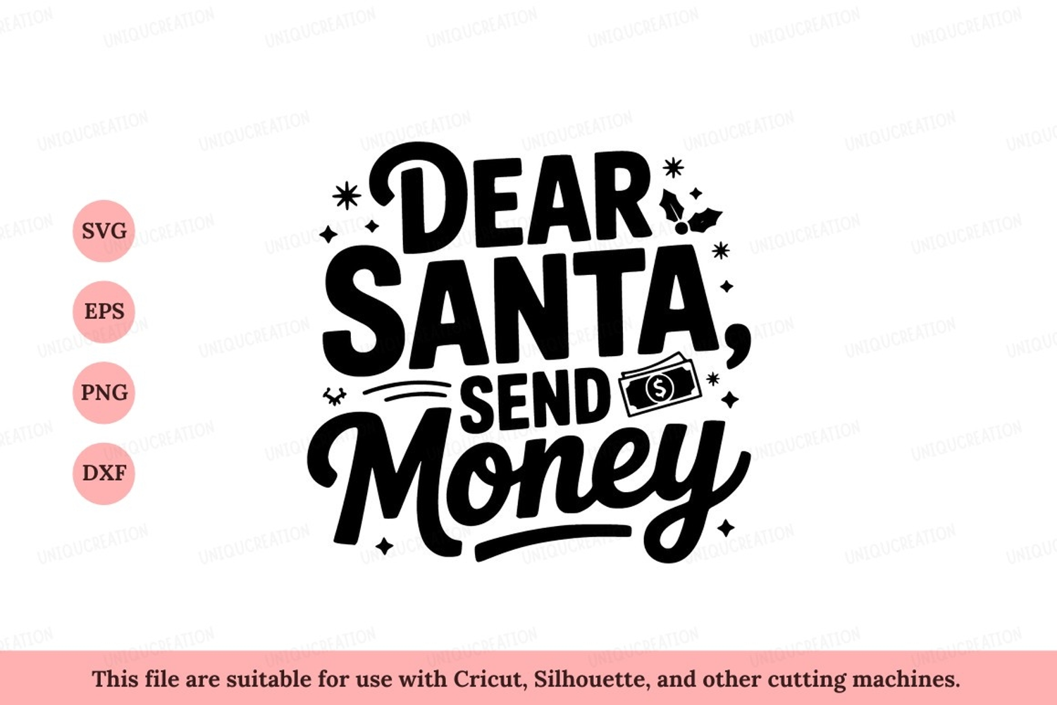 Lettering Text Greeting Holiday Black Christmas Santa White Money Festive