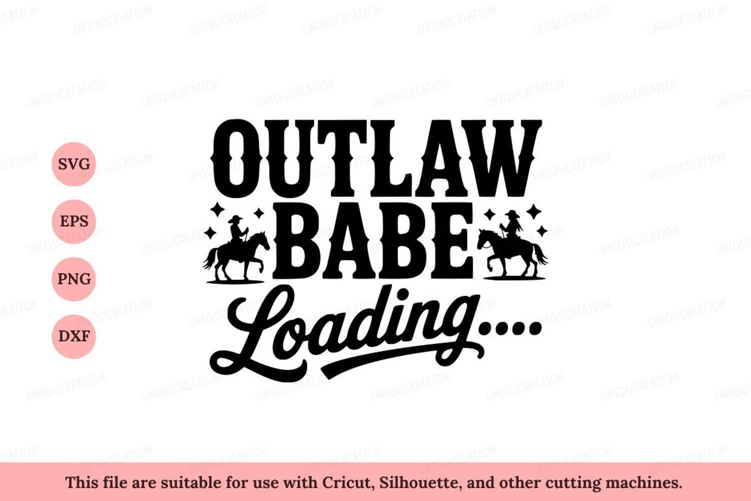 Lettering Text Western Cowboy Silhouette Horse Rider Cowgirl Outlaw Babe