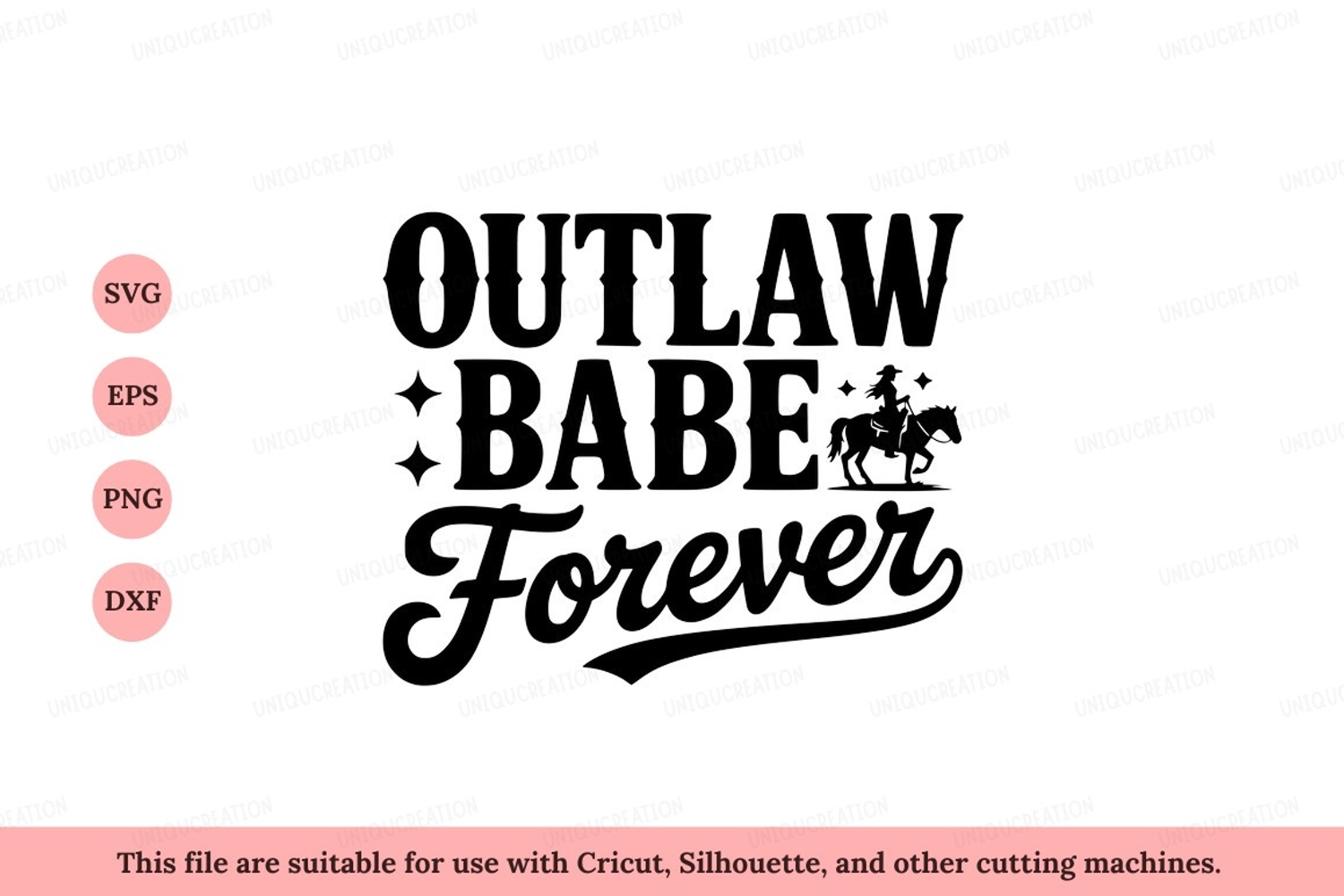 Text Western Cowboy Silhouette Horse Rider Cowgirl Forever Outlaw Babe