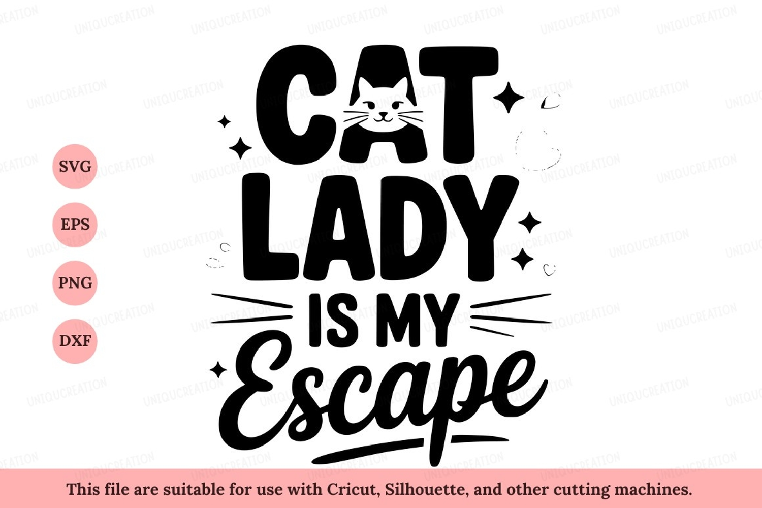 Lettering Illustration Typography Text Quote Black Graphic Cat Lady Escape