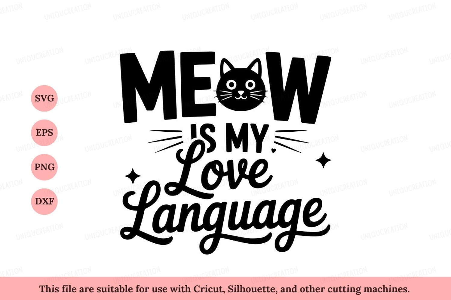 Black cat meow love language text