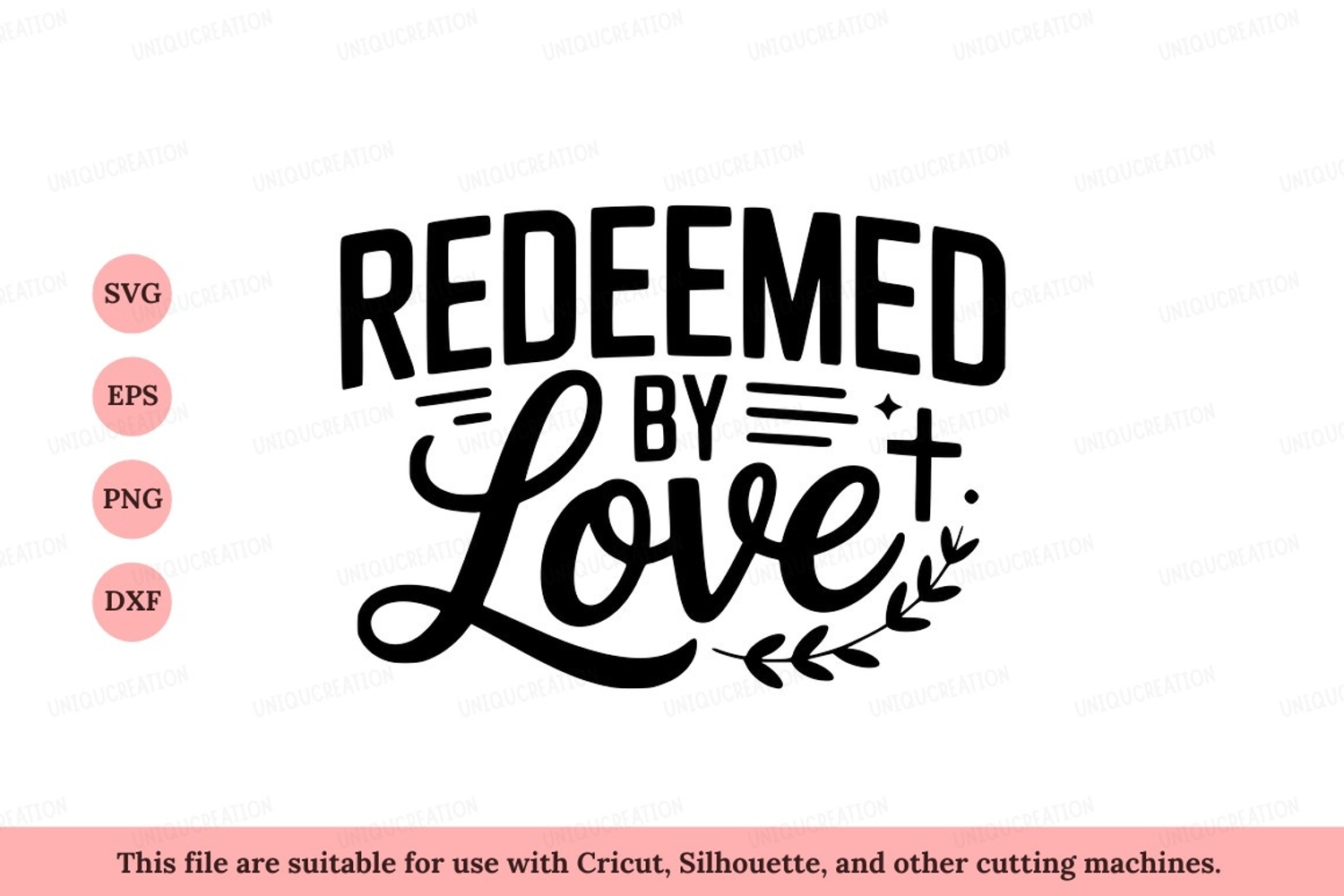 Redeemed by love cross and leaves christian example image 1