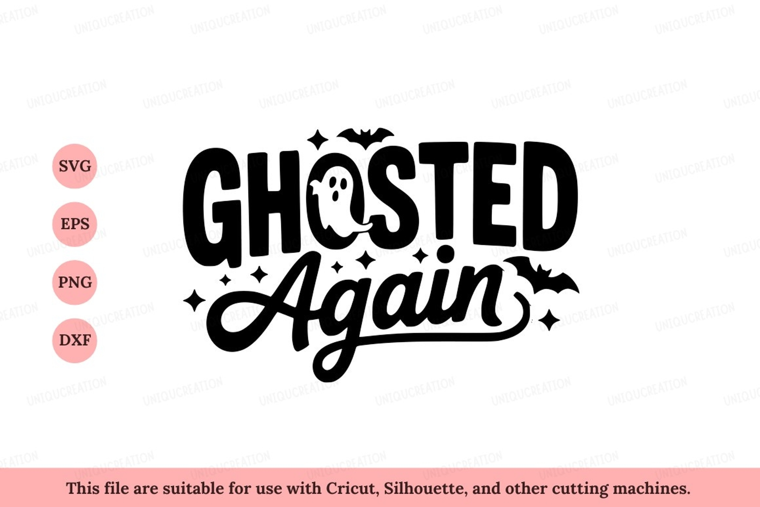 Lettering Text Halloween Black Spooky Ghost White Stars Bats Again