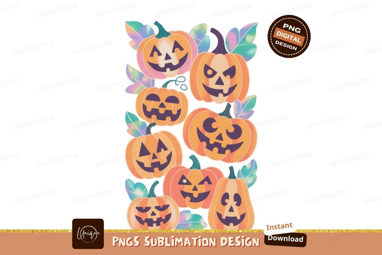Similar Design Products to Spooky jack o lantern faces with pastel leaves halloween