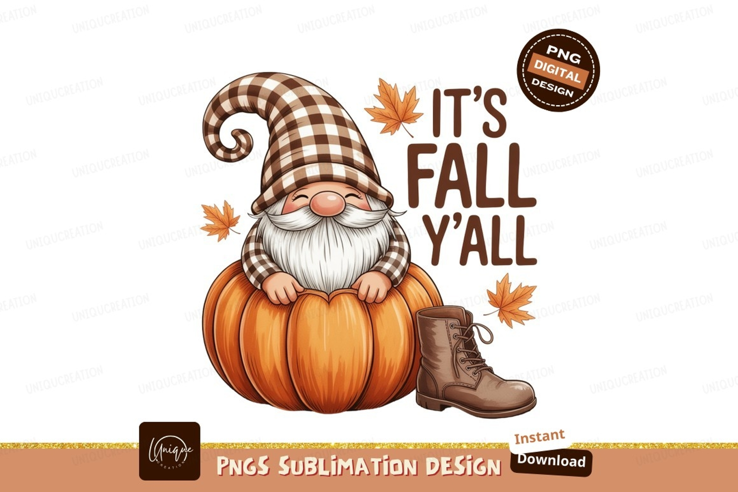 Cheerful gnome pumpkin autumn boot leaves example image 1
