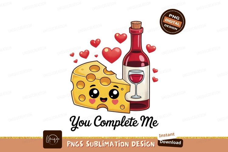 Cute cheese and wine hearts yellow example image 1