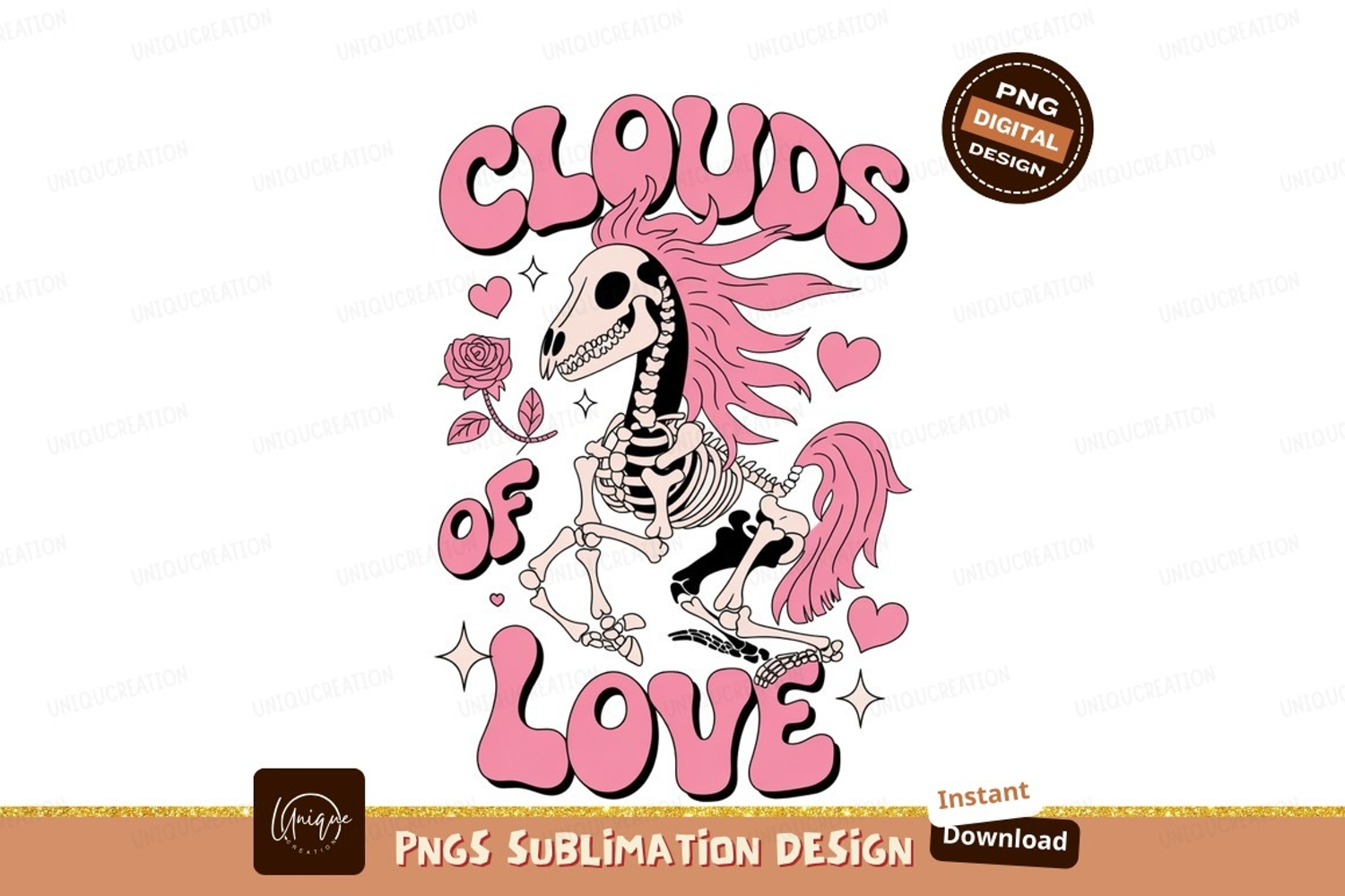 Skeleton horse pink mane hearts rose tail