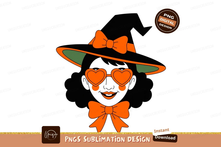 Witch hat heart glasses bow orange green example image 1