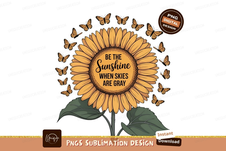Sunflower butterflies inspirational quote orange yellow example image 1