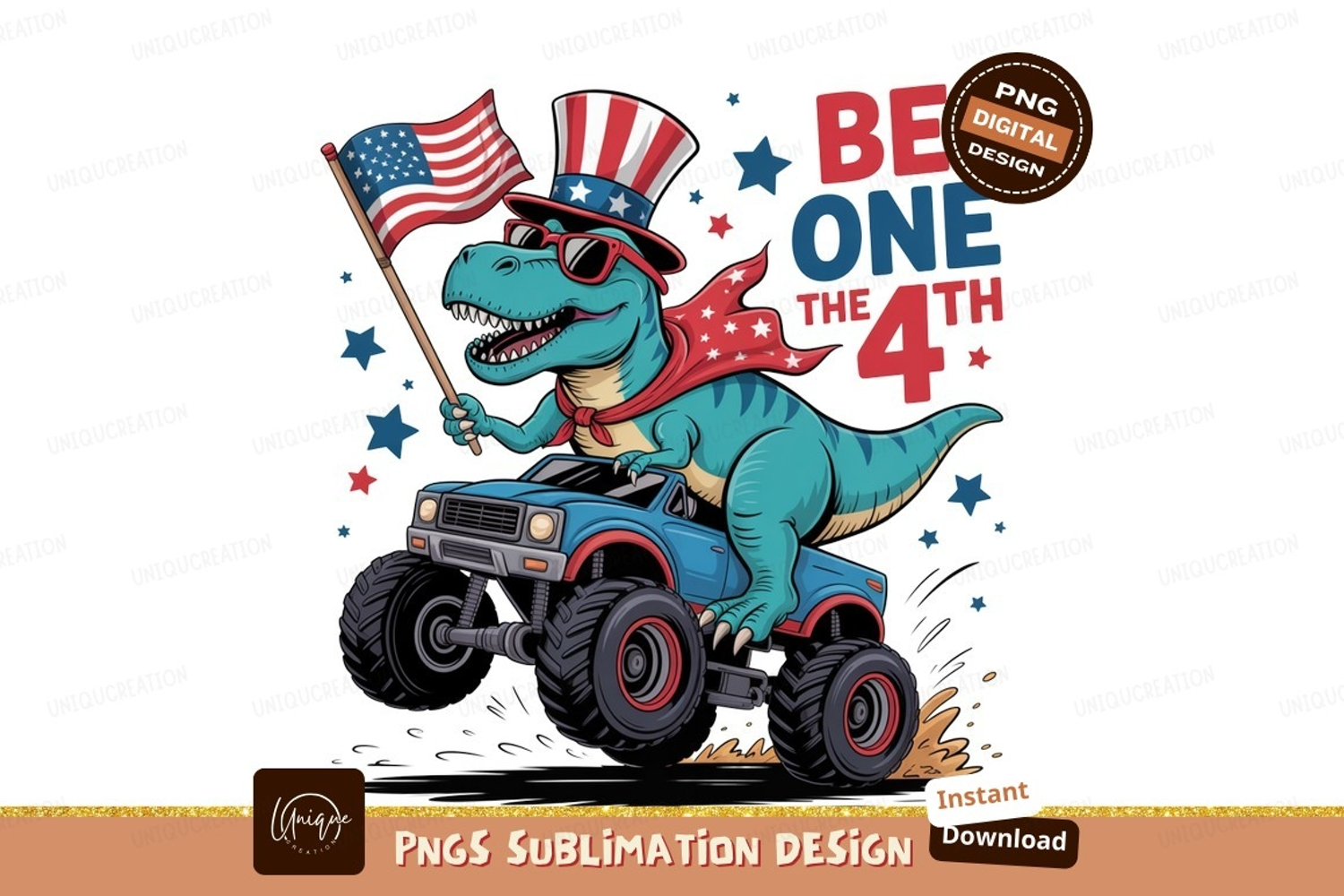 Similar Design Products to Dinosaur driving monster truck waving flag american