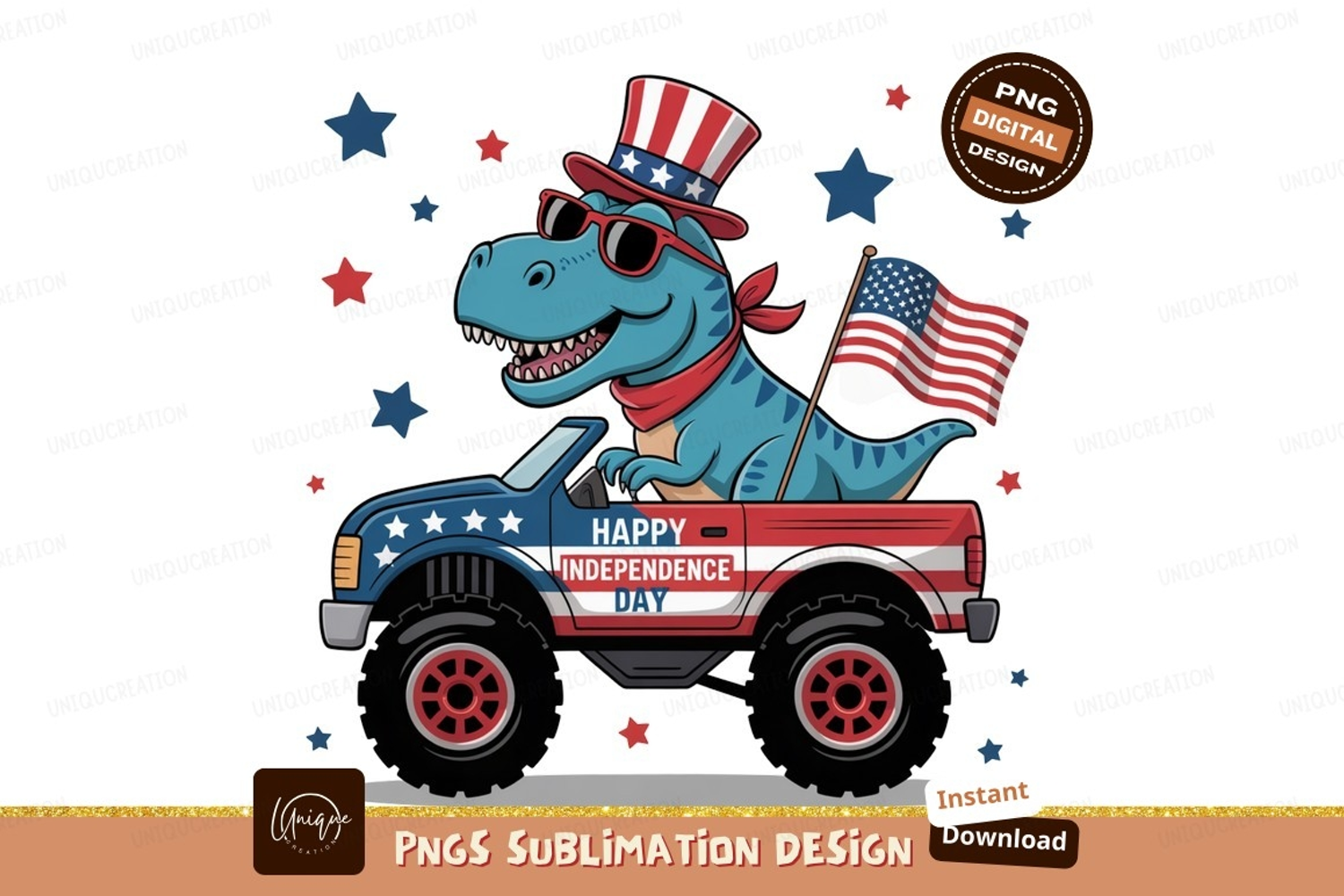 Similar Design Products to Dinosaur driving patriotic truck american flag
