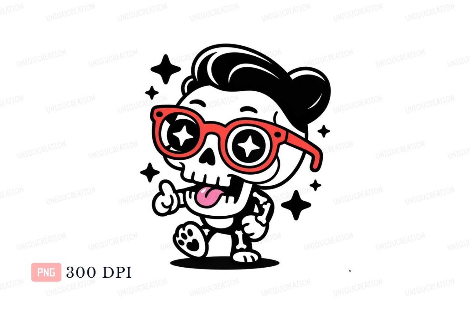 Character Cartoon Playful Black Pink Background Glasses Red Tongue Silly