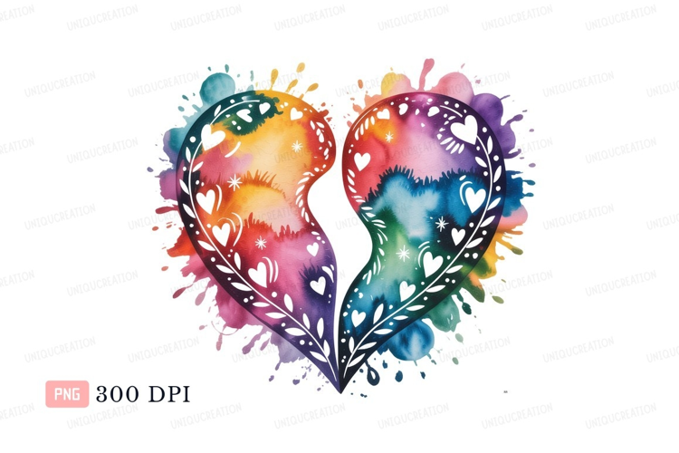 Watercolor Love Art Design Colorful Heart Splash Abstract Rainbow Broken