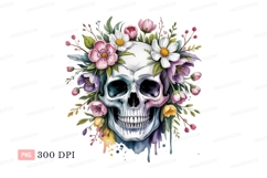 Similar Design Products to Skull adorned with colorful flowers floral pink