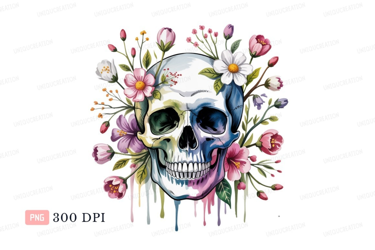 Similar Design Products to Colorful skull adorned with blooming flowers floral