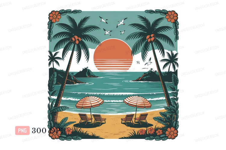 Similar Design Products to Tropical beach sunset with palm trees and umbrellas