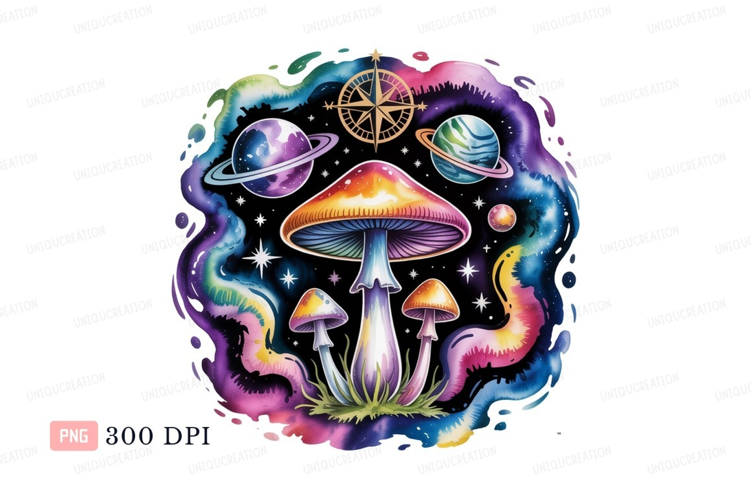 Psychedelic mushrooms planets cosmic swirls space