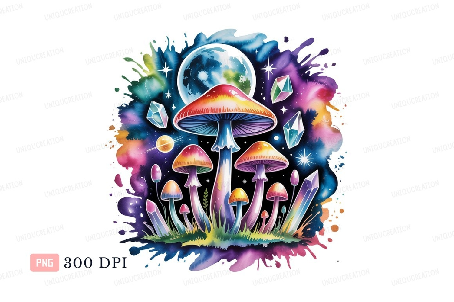 Fantasy Colorful Surreal Cosmic Vibrant Moon Mushrooms Stars Psychedelic Crystals