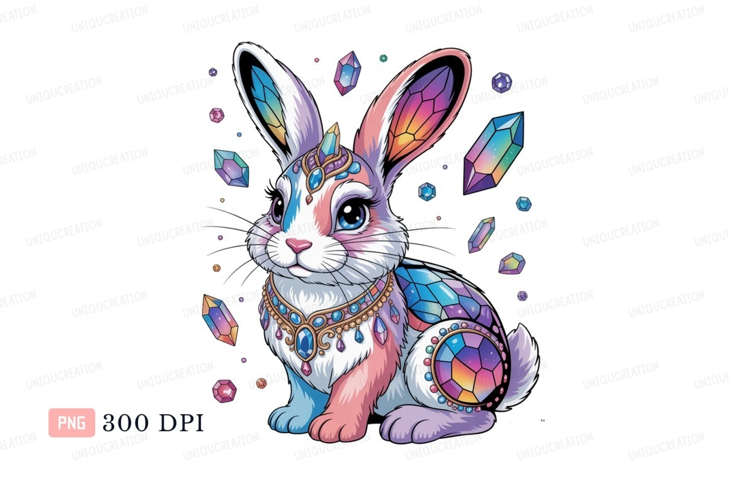 Jeweled rabbit surrounded by crystals bunny gemstone example image 1