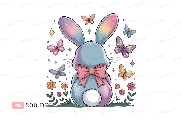 Spring Whimsical Cute Nature Flower Garden Butterfly Bunny Pastel Rabbit