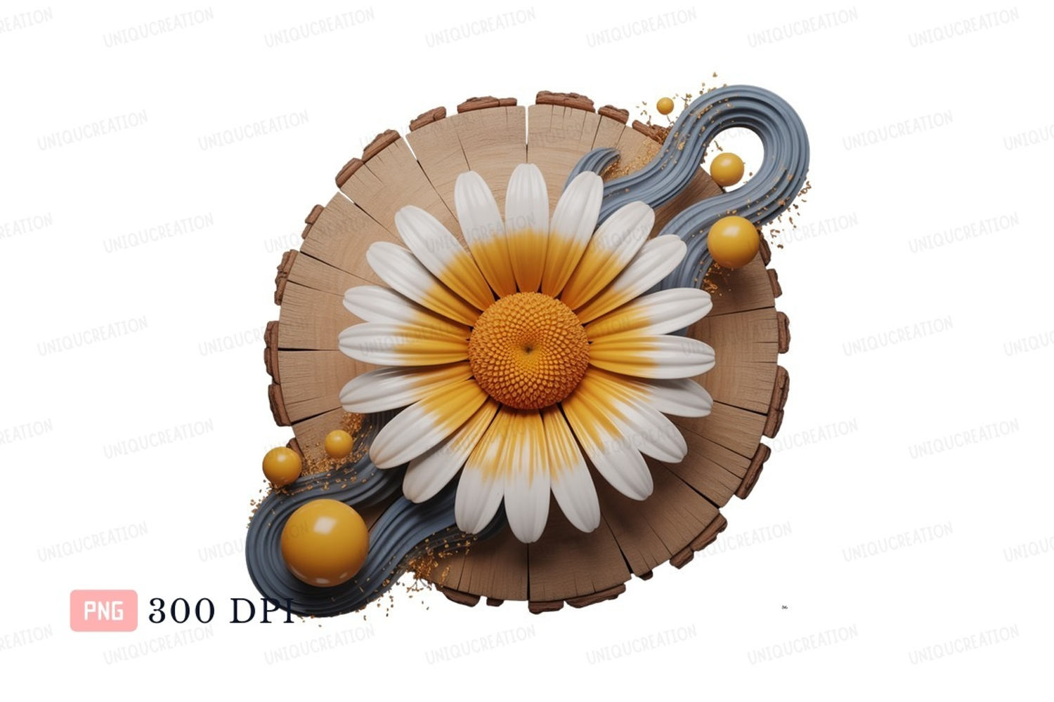 Daisy flower wood slice yellow spheres image example image 1